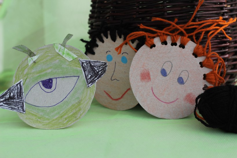 Tee näin: Piirrä kartongille ympyröitä, voit käyttää pientä lasia apunasi. Leikkaa irti. Piirrä kasvot ja suunnittele hiukset. Hiukset kiinnitetään solmimalla, rokkitukka, pitkät letit vai kultaiset kutrit? Käytä reiítintä tai Fiskarsin pihtireiíttäjää.