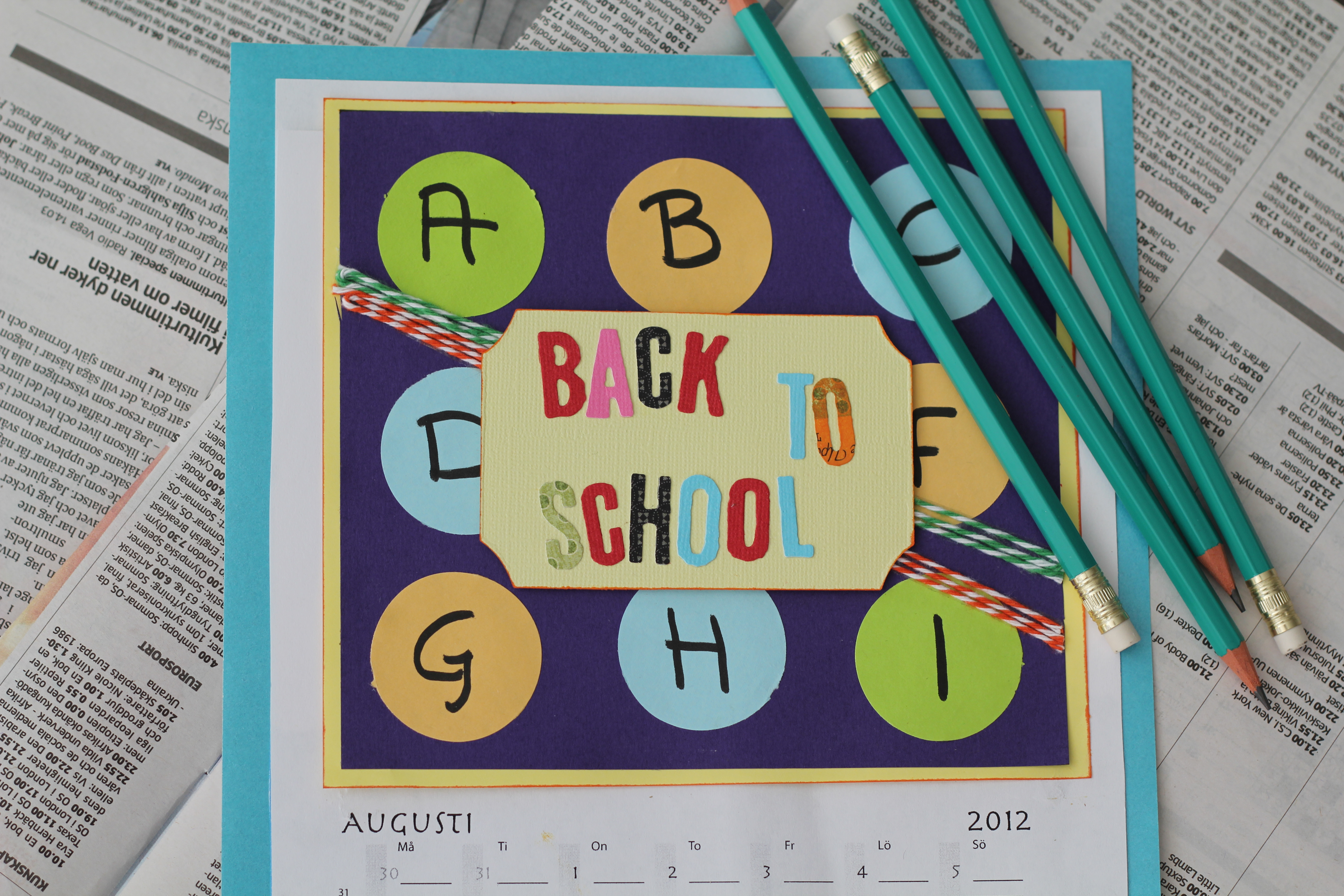 Augusti bladet fick sin inspiration utav skol och bokstäver. Rundlarna är klippta med Fiskars stans. Bokstäverna är klippta med Sissix Big Shot. Mera bokstavspyssel närmare skolstarten. Njut av de sista lediga dagarna!