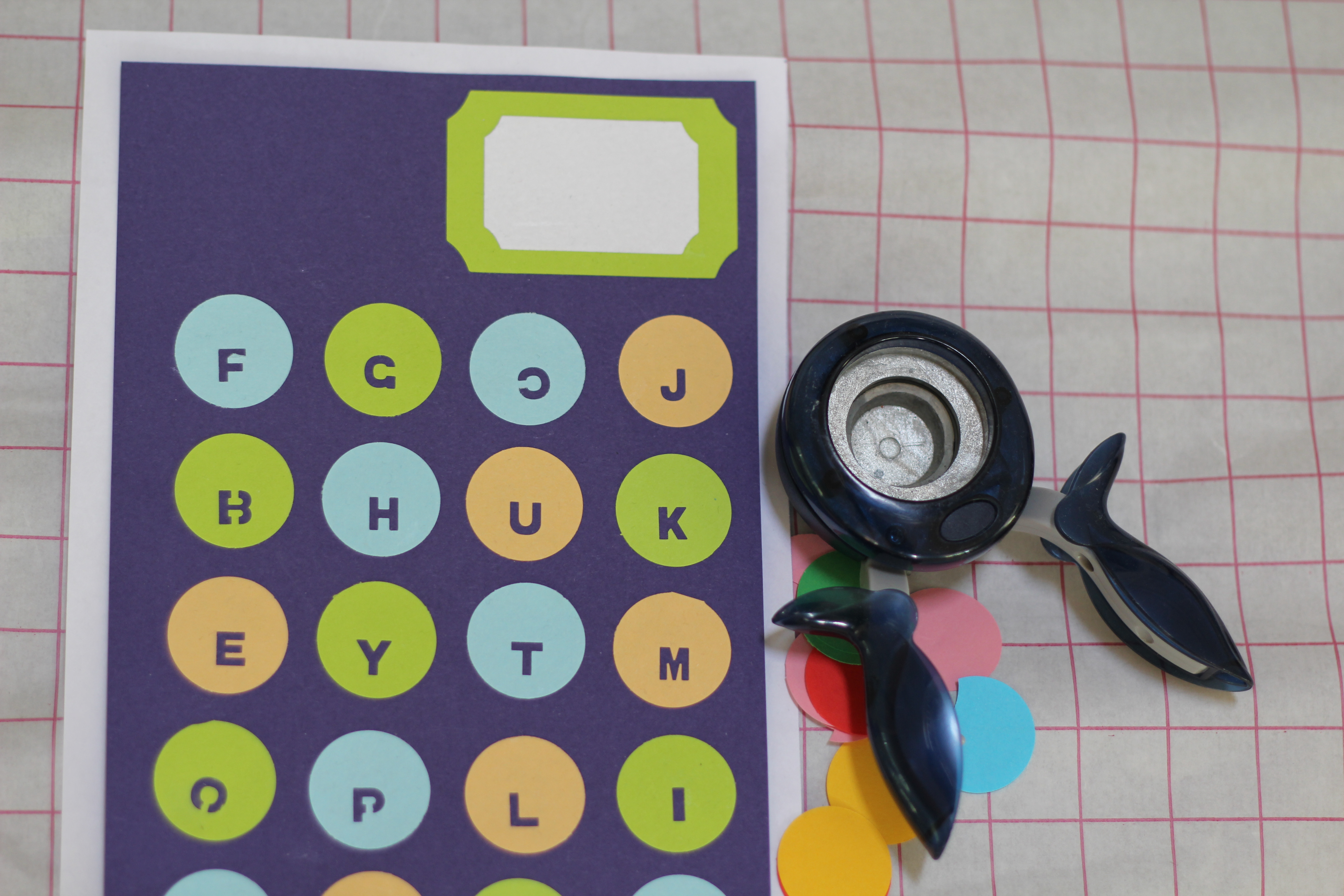 Här har ett blårutigt häfte fått ett nytt omslag. Med Fiskars runda stans går detta super fort, vill du inte ha bollar kan du klippa ut hjärtan, stjärnor eller varför inte bokstäver och klistra på häftet.
