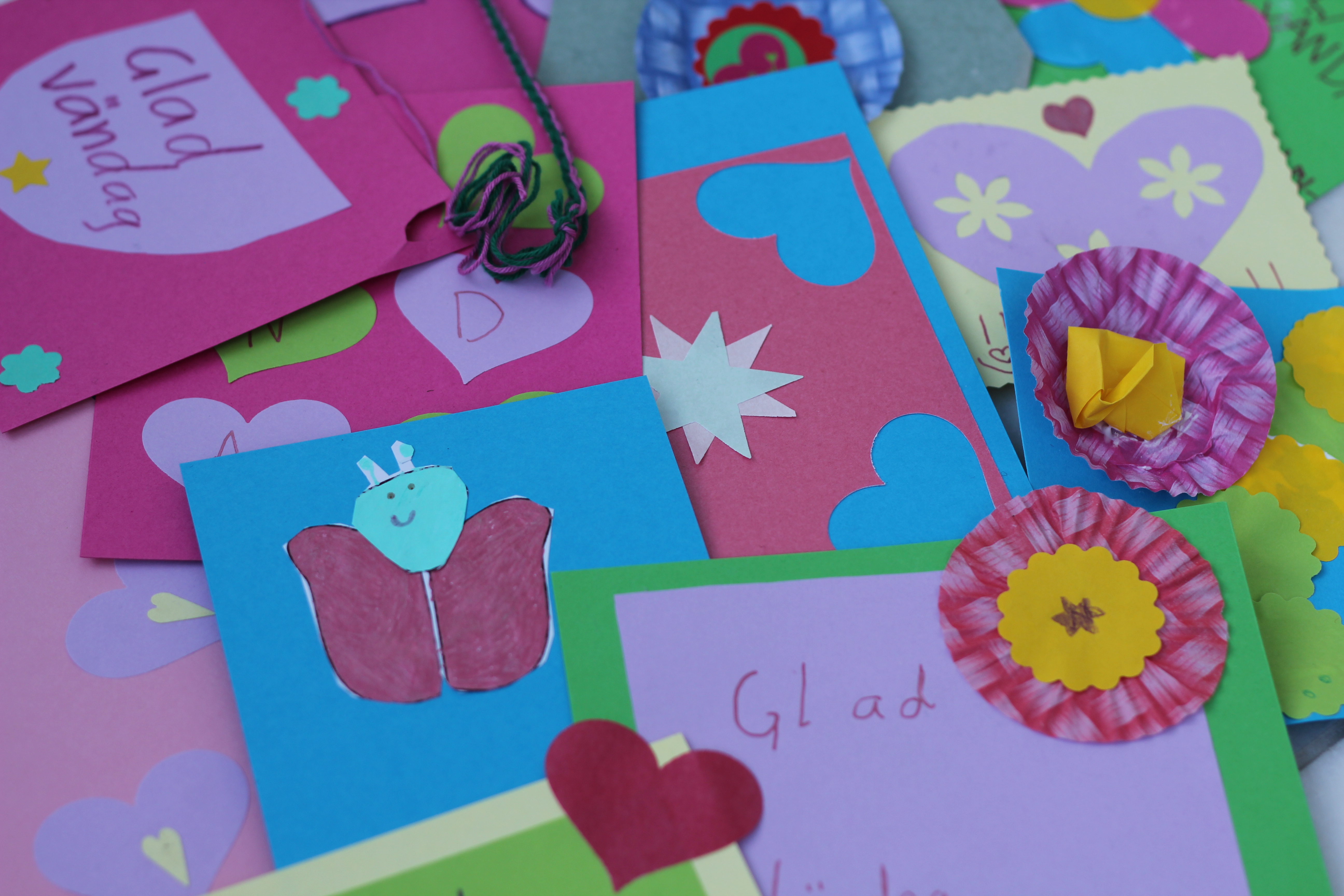 Lämmin kiitos lapsille Karamalmens skolassa! He askartelivat tänään 50 kaunista ystävänpäivä korttia Tunaberg Palvelutalon ja Tunaro hoitokodin asukkaille. Iloisin mielin he askartelivat vinon pinon kortteja ilahduttamaan vanhuksia.