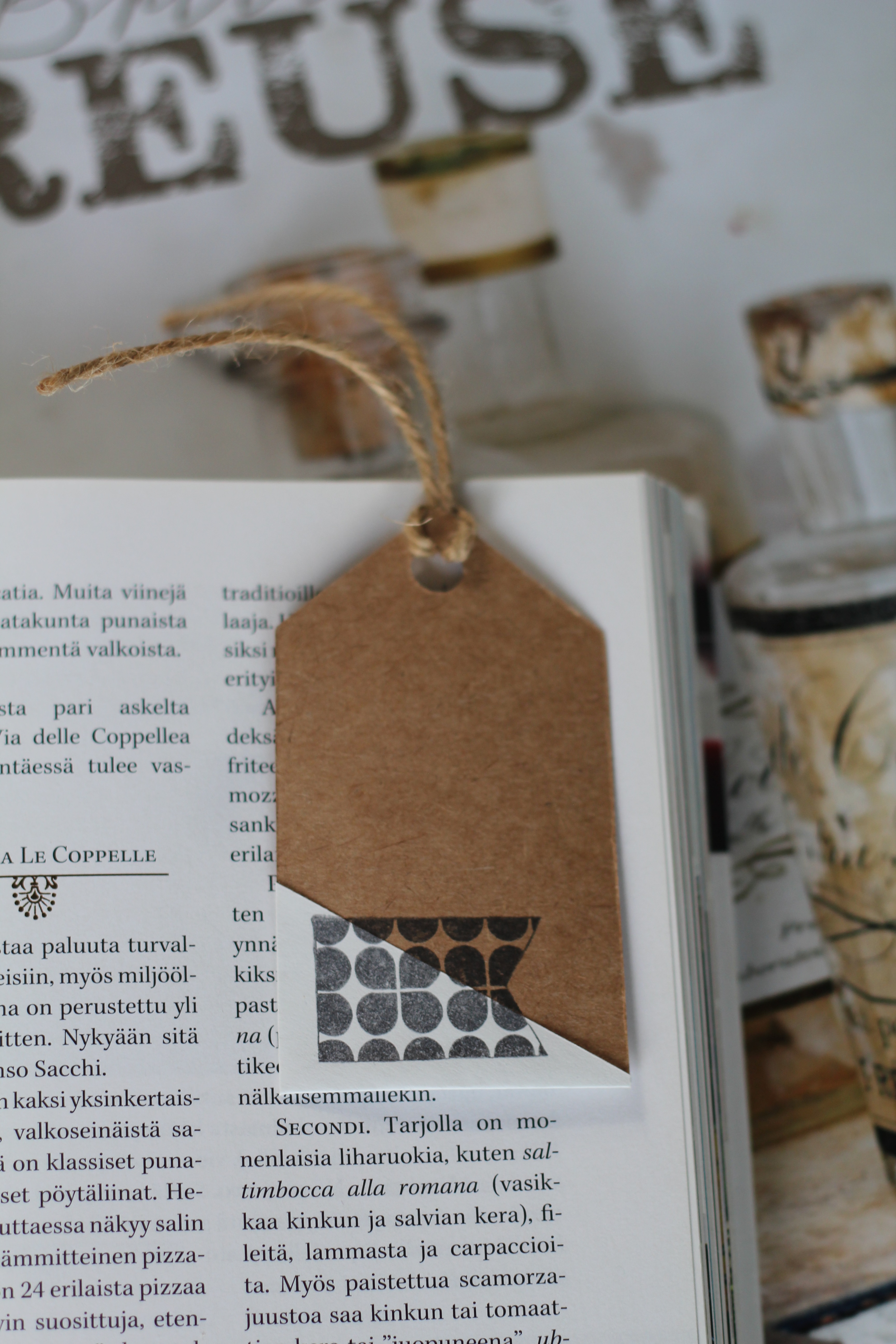 Syksyn tullen on mukava kietoutua viltin alle ja uppoutua kirjan maailmaan. Tee omaan tyyliin sopiva kirjamerkki hetkessä. Pakettikortin muoto sopii loistavasti kirjamerkin pohjaksi. Materiaalina käy kaikki paksummat paperit ja kartongit.