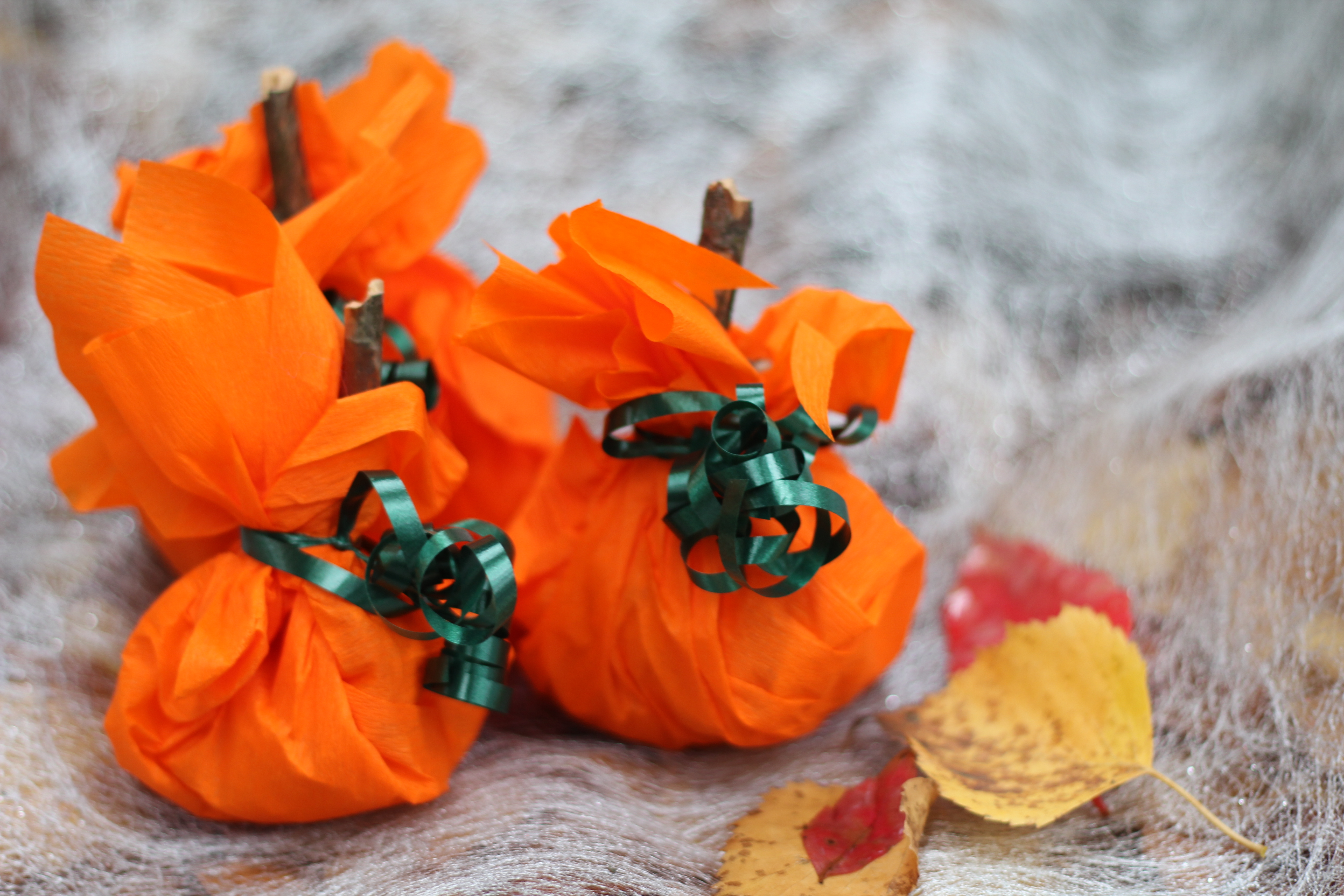 pumpor! Till små pumpor behövs ca 25x35cm papper, klipp till pumpans skal. Skrutta ihop